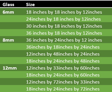 Extra clear, Rimless, Imported, and Flat-H glass.